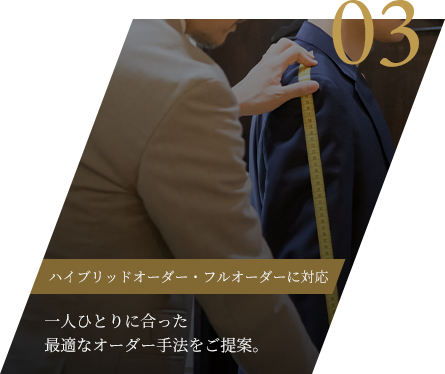 共に創り上げる至極の一着をコンセプトに 唯一無二のオーダースーツを。